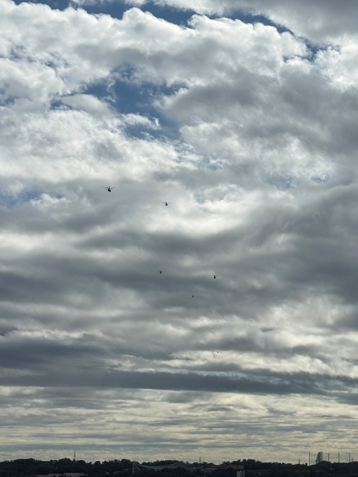 我说怎么吵得要死一看10架直升机从天上飞过,怕不是从美军基地飞来迎接要人的x
