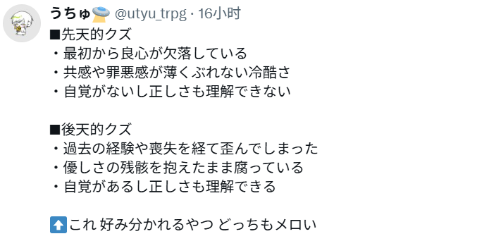 我要发一个疯,就是他真的很苦经常想自杀,但是又努力活得好像很开心,会口胡会撒娇让你夸他还会毒舌对手别那么大声叫我名字我们又不是在交往,还会扭头小声跟你吐槽镇上小青年顺着他的胡话更加胡话“还有这种设定?”他真的,怎么这么可爱 (滚去睡觉啊你)