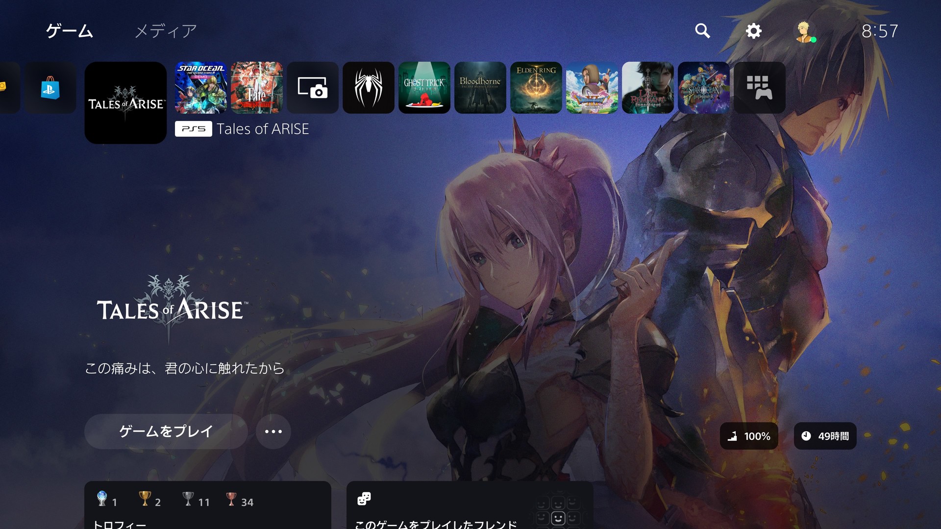 上月底开始开坑的三个游戏,最先动手的最后通关的,漏了一个支线奖杯最后81%,算了反正我又不打白金,感觉比起讲故事更注重系统上的一些改变,好玩的至少比9好玩。我没打过黎,就伊苏系列来说演出进步很大。