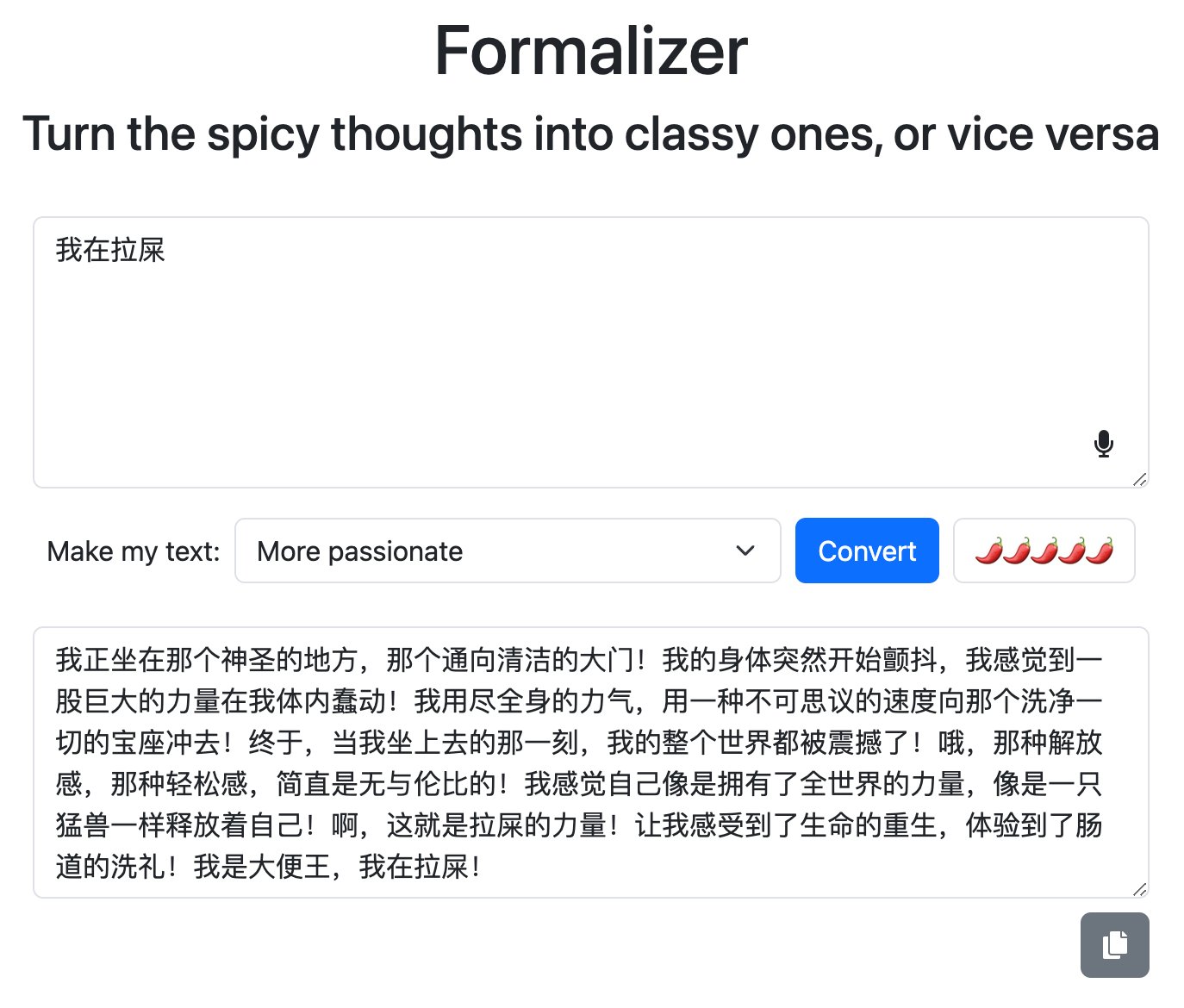 找到了一个新玩具!!!可以把语言转换为更礼貌(图一)or更暴躁(图二)的版本哈哈哈哈哈哈哈,还能发癫(不是
